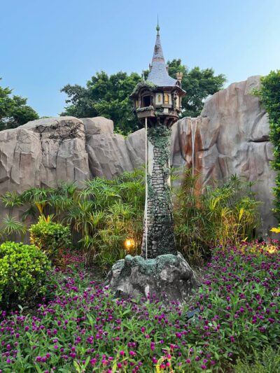 Fairy Tale Forest is a walkthrough attraction in Fantasyland. Located opposite Dumbo the Flying Elephant, it features manicured gardens with miniatures themed to various classic Disney movies like Tangled, The Little Mermaid, Snow White and the Seven Dwarfs, Cinderella, and Beauty and the Beast.