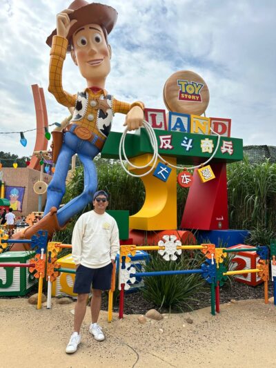 Next we’re going to take pictures by the 3 statues of Toy Story characters in Toy Story Land. You can find Rex by the entrance to Toy Story Land from Mystic Point, and Woody on the opposite side of the land by the entrance near Fantasyland. Mr. Potato Head, on the other hand, can be found outside Andy’s Toy Box.