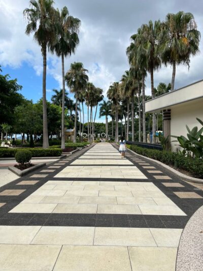The area at the back of the hotel in particular is gorgeous and if you go to the back of the sign you’ll see two vintage cars you can also take pictures with. You can also exit the property at the back end of the grounds, where you’ll reach a waterfront path that connects to the other hotels.