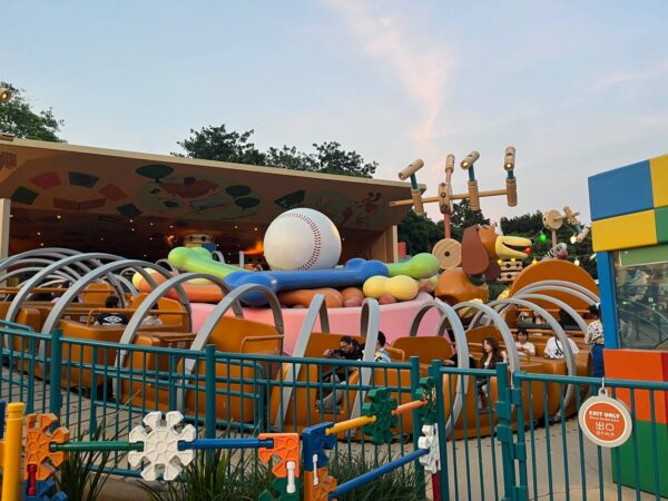 Similar to those caterpillar rides you can find in carnival’s, the ride has you riding on Slinky Dog as he chases his tail around and around. It’s a basic ride compared to Florida’s Slinky Dog Dash ride, and is my least favorite of the three Toy Story Land rides as it doesn’t have any redeeming qualities about it.