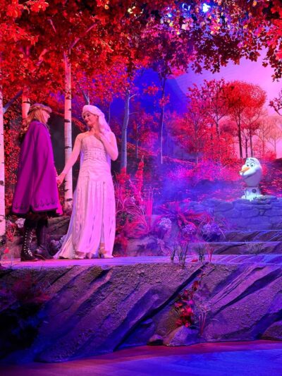 An Anna and Elsa show taking place in the same mountain as the Sliding Sleighs, it’s supposed to be “interactive” but the interactivity is limited to picking a spirit to determine how the show will end. Nothing to write home about.