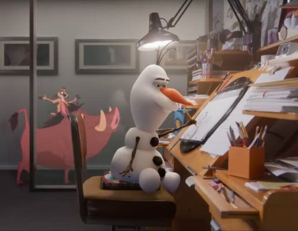 Josh Gad, the voice of Olaf in the Frozen franchise, returns to voice the character in the experience. Olaf will be present in the experience as a state-of-the-art audio animatronic that will be stationed at the front of the room. The story goes that Olaf wants to learn to draw his favorite characters, but since he doesn’t know how to draw, he invites various Disney animators, appearing via pre-recorded segments, to come and teach him and the guests how to draw various Disney characters.