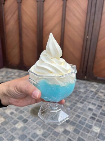 One of the two ice cream options you can have at Northern Delights at World of Frozen, the Coronation Slush consists of a light milk-flavored soft serve ice cream that is served on top of an elderflower-flavored slush. It’s the perfect treat to have during a hot day in Hong Kong Disneyland (as most days at Hong Kong Disneyland are). The soft serve is creamy and light while the slush is refreshing and sweet. Definitely a good option if you’ve got a bit more money to spare.