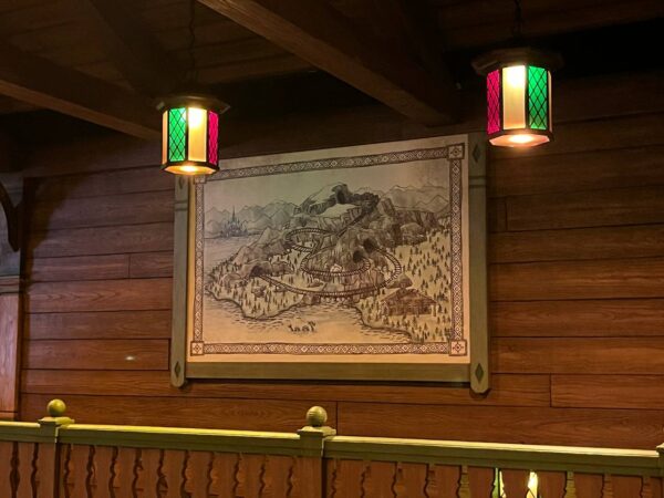 The queue for the Frozen coaster starts in Wandering Oaken’s shop from the movie before it takes you inside the mountain. Inside the mountain you’ll find Oaken’s sauna and, if you time it right, you might see him go up to the window and draw things on the condensation. Afterwards, you enter the load area, where there is a desk that showcases Oaken’s different ideas for how he was going to get the sleds up the mountain. If you look closely, one of the sketches actually made it into the ride.